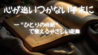 距離感と人間関係の整え方 心が追いつかない年末に――“ひとりの時間”で整えるやさしい距離 年末になると心が追いつかないと感じることがあります。情報や人との距離の変化で疲れやすくなる季節に、ひとり時間で心を整える方法をやさしくまとめました。 2025.12.29 距離感と人間関係の整え方