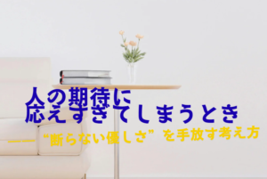 本日は「人の期待に応えすぎてしまうとき――“断らない優しさ”を手放す考え方」というテーマで綴ってみました。